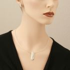 This subtle silver pendant is comprised of boiled white silver struts that are vertically-aligned and soldered together. The untarnished silver comes with edges that are slightly polished, which is why it looks finer and a bit nobler than the blackened silver version. This functional, yet adaptable pendant is a great everyday companion. We recommend wearing this pendant with a simple silver circlet with a length of 16.54 inch, 42 cm. The matching bracelet and earrings from the “Barbara” collection complement this piece very well. silver - material information.