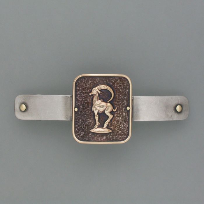This hair clip consists of a nickel silver bar on which a brass plaque is placed. The plaque shows a stylized ibex and is slightly blackened, which gives the hair clip a quaint, rustic chic. Safety-loving, hard-working and goal-oriented, these characteristics are said to be the Capricorn. So if you were born under this sign of the zodiac or would like to give a gift to a Steibock, this hair clip is ideal. It is equipped with a mechanism that is suitable for all hair thicknesses.