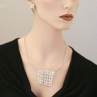 This striking pendant is a comprised of a loose network of irregular silver bars. The lattice work is heavily spaced, so that the pendant appears both light and airy despite its size. The untarnished silver comes with edges that are slightly polished, which is why it looks finer and a bit nobler than the blackened silver version. We recommend wearing this silver pendant on a silver circlet with a length of 19.68 inch, 50 cm. Other jewellery from our “Lattice” collection can also be found here at our online shop. Information on MATERIAL silver.