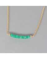 This filigree necklace pendant is a small but very colorful accessory for your neck. It is a round, faceted cut emerald set in gold. The pendant is open at the back, enhancing the bright and rich green color of the emerald. A matching delicate gold chain, we now have for you in the range.