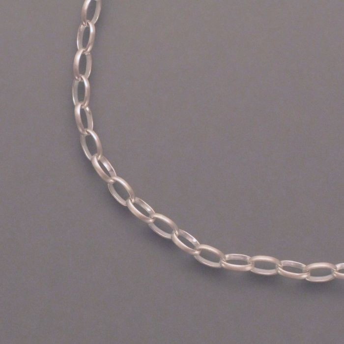This chain consists of many oval eyelets made of 925 sterling silver. It is particularly suitable for medium-sized or larger pendants,or can also be worn by itself. Information on materials - silver.